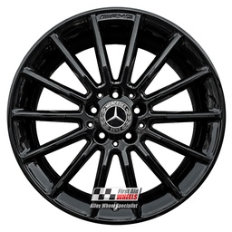 R412GB EXCHANGE SERVICE - MERCEDES A B CLASS CLA 4x18" GENUINE AMG GLOSS BLACK ALLOY WHEELS